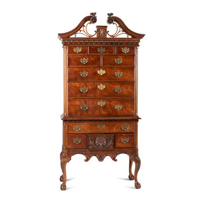 A Philadelphia Chippendale Style Shell-Carved Mahogany High Boy