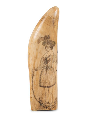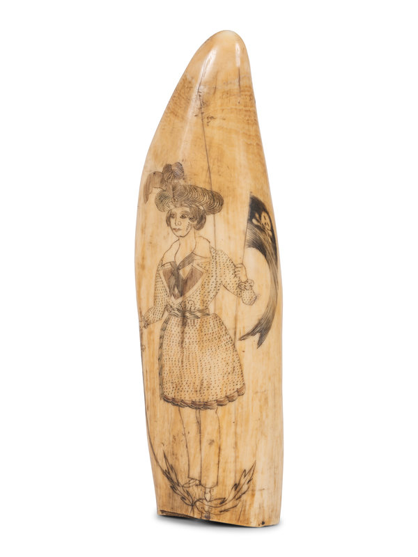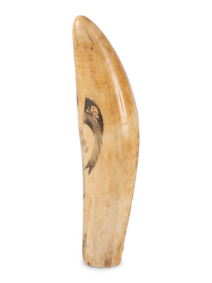 A Scrimshaw Tooth with Depiction of Female Pirate Fanny Campbell and a Patriotic Device