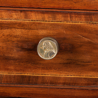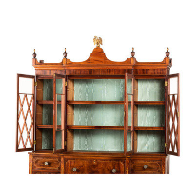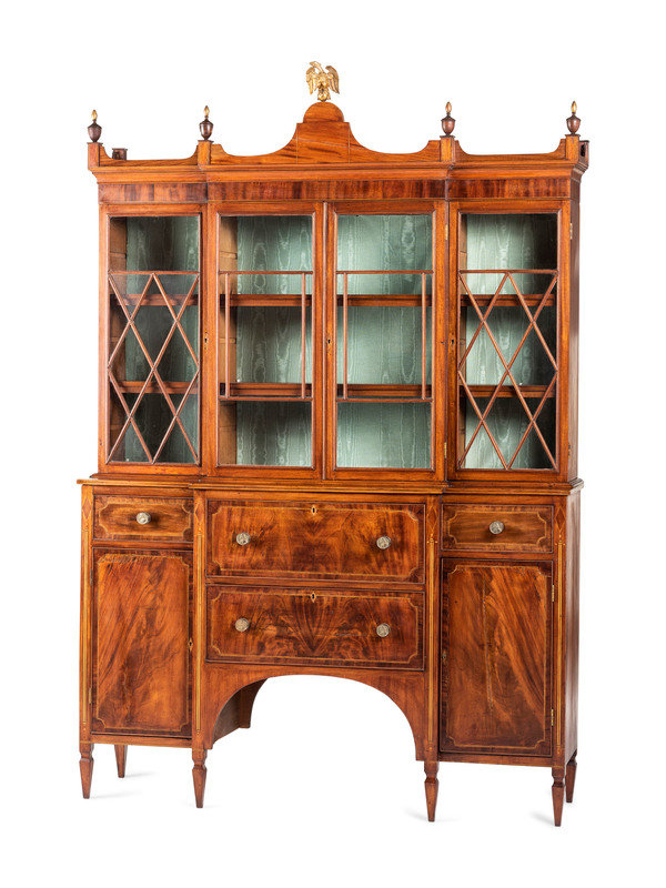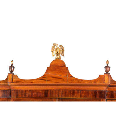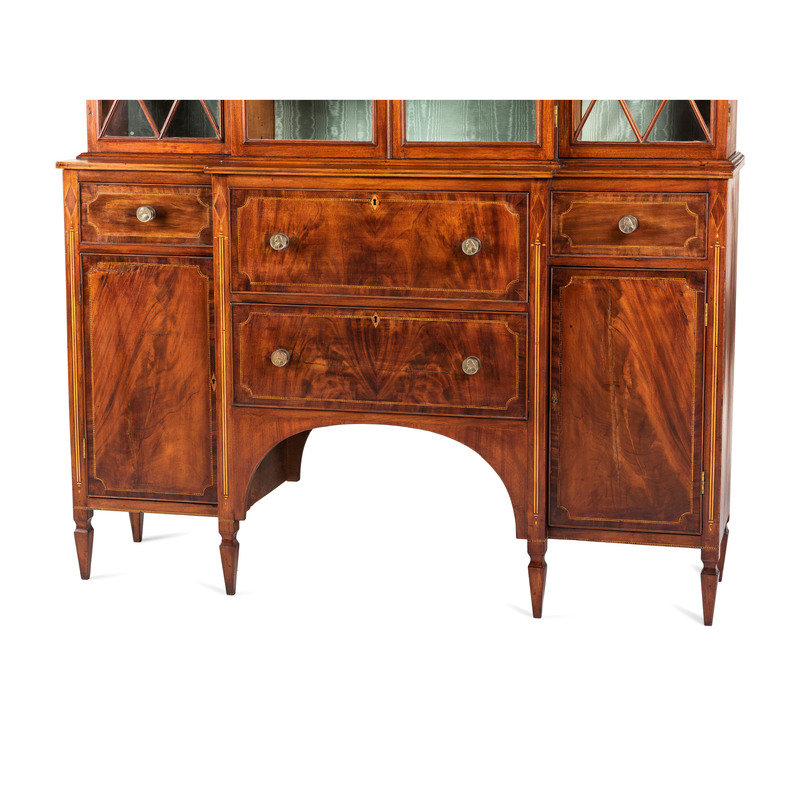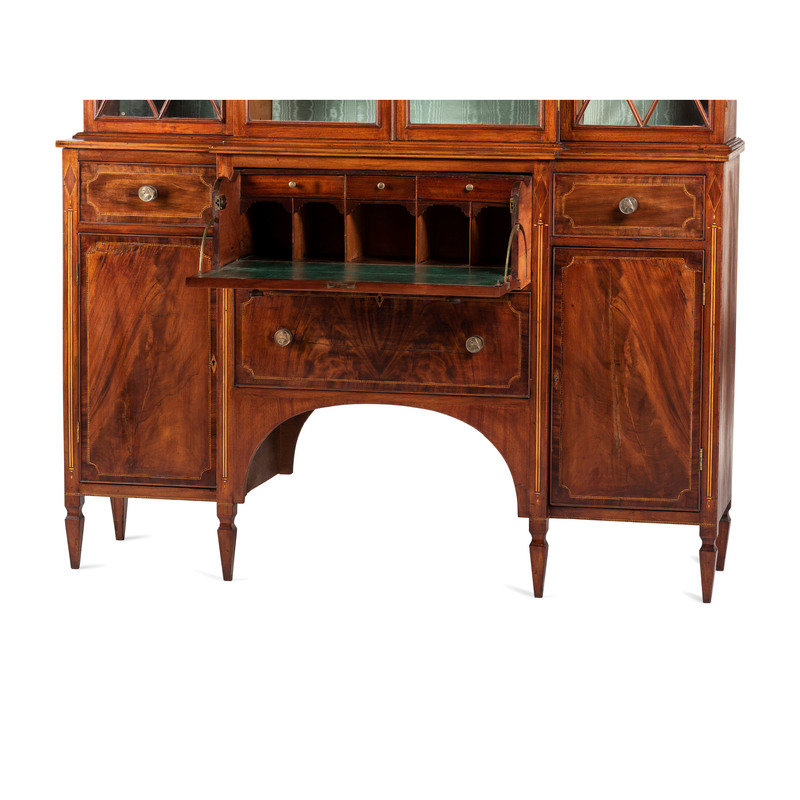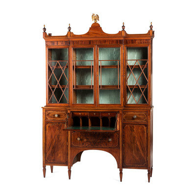 A Federal Parcel Gilt Mahogany, Holly and Ebony Breakfront Gentleman's Desk-and-Bookcase