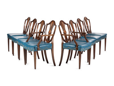 each with sun and bell-flower inlay, comprising 2 armchairs and 6 side chairs.