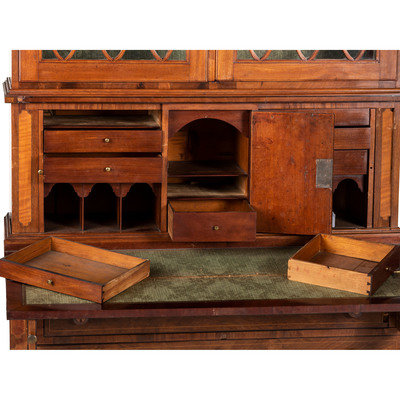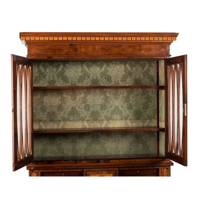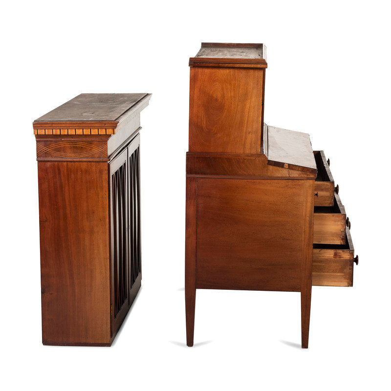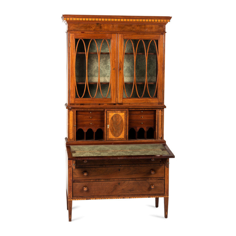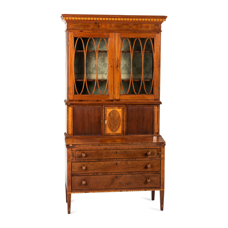 A Federal Inlaid Mahogany and Tambour-Front Desk-and-Bookcase