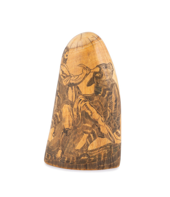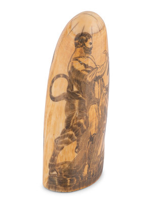 A Scrimshaw Tooth Depicting Hercules and the Cretan Bull