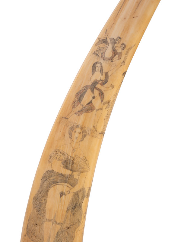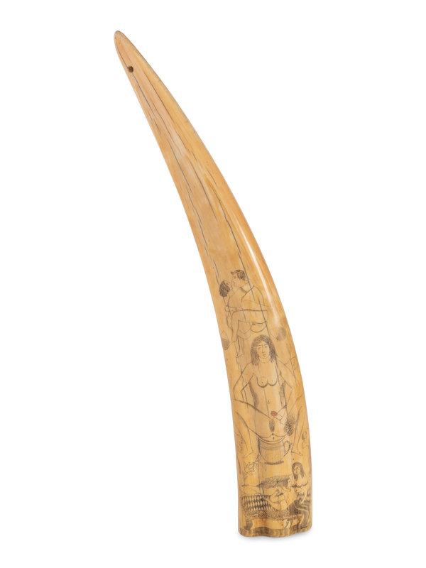 A Scrimshaw Walrus Tusk with Erotic Depictions