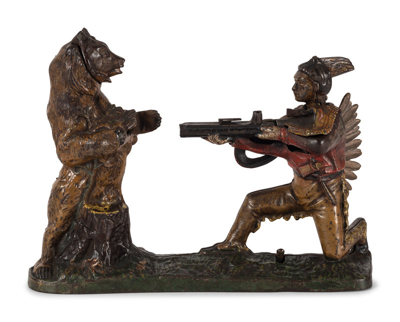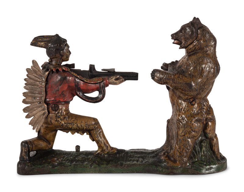 A J. & E. Stevens Indian and Bear Cast Iron Bank