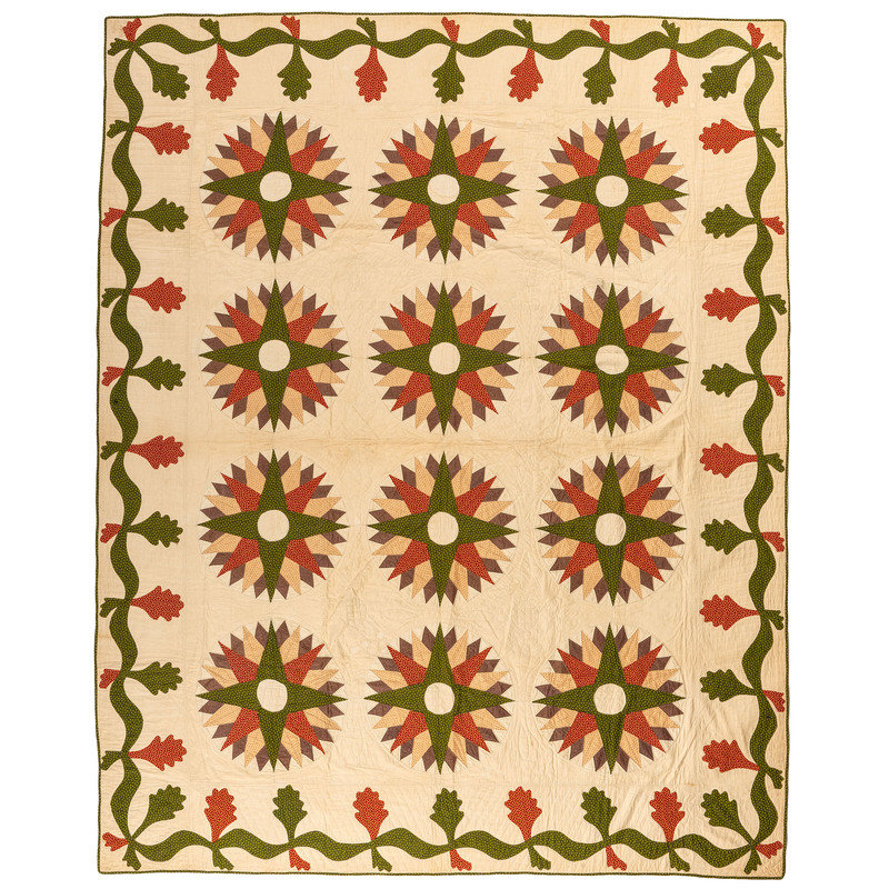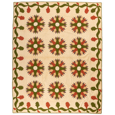 A Mariner's Compass Pattern Quilt with Oak Leaves
