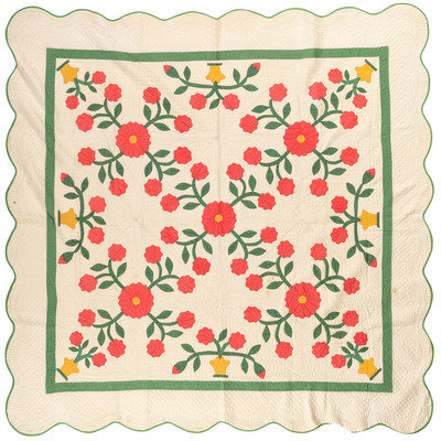 A Basket of Flowers Pattern Quilt with a Scalloped Edge