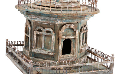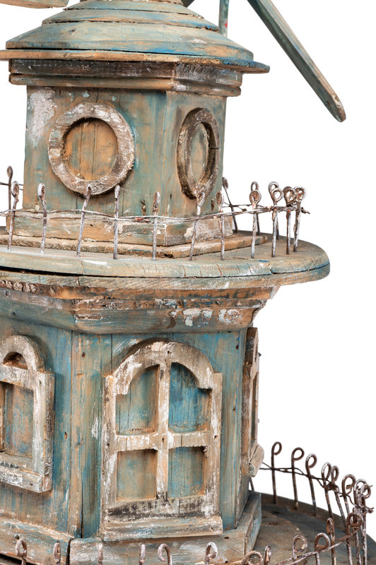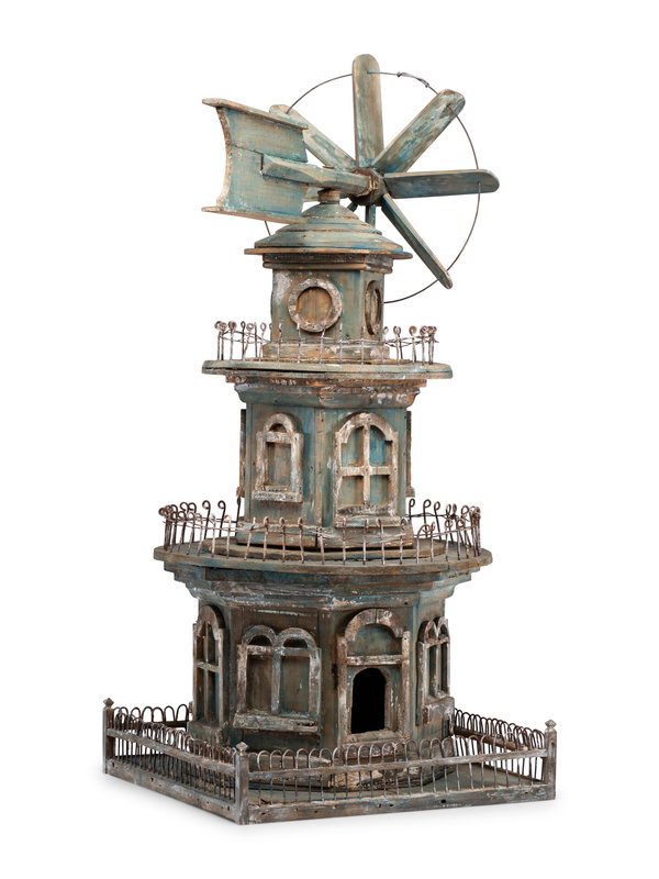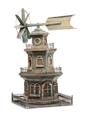 A Victorian Painted Wood and Wire Architectural Whirligig Directional Birdhouse