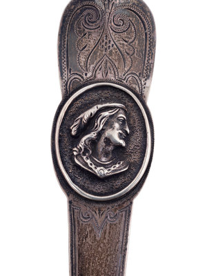 monogrammed on underside of handle and marked H. Muhr / Coin.