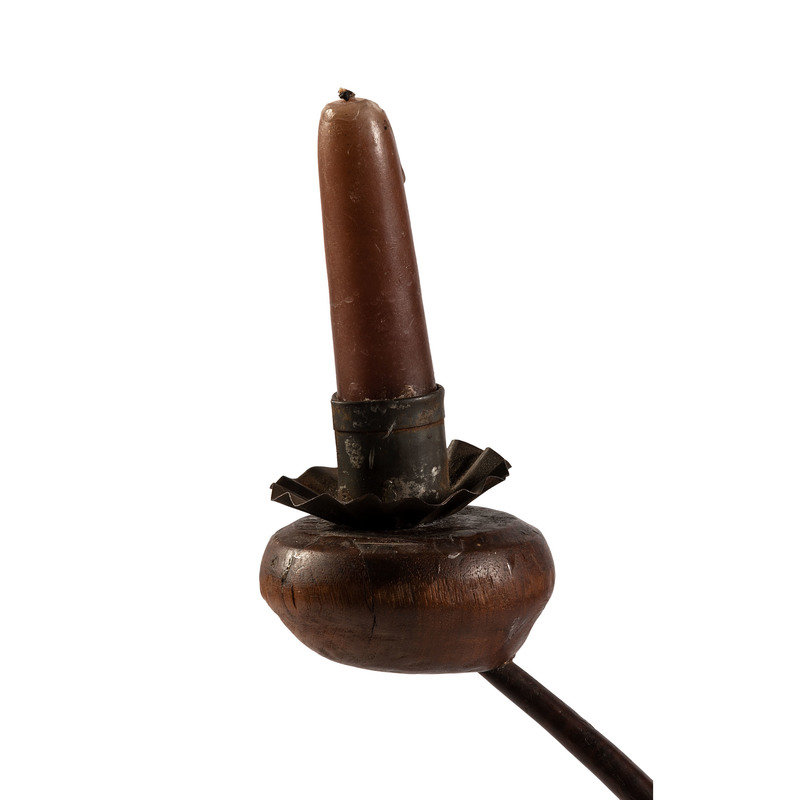 A Primitive Tin Mounted Bentwood and Pine One-Light Candlestand