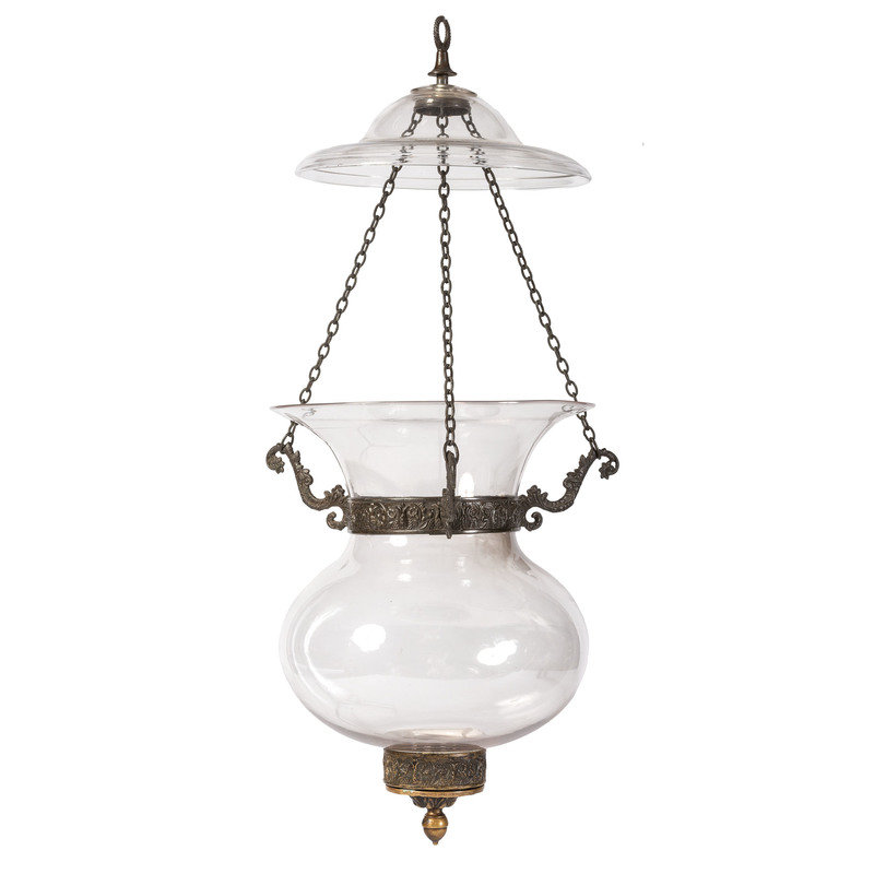 A Classical Pressed Metal Mounted Blown Glass Hall Lantern