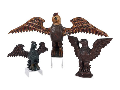 Comprising a Rodney Boyer “Schimmel Style Eagle”, a large Schimmel style eagle inscribed WJG 81 and a finial.