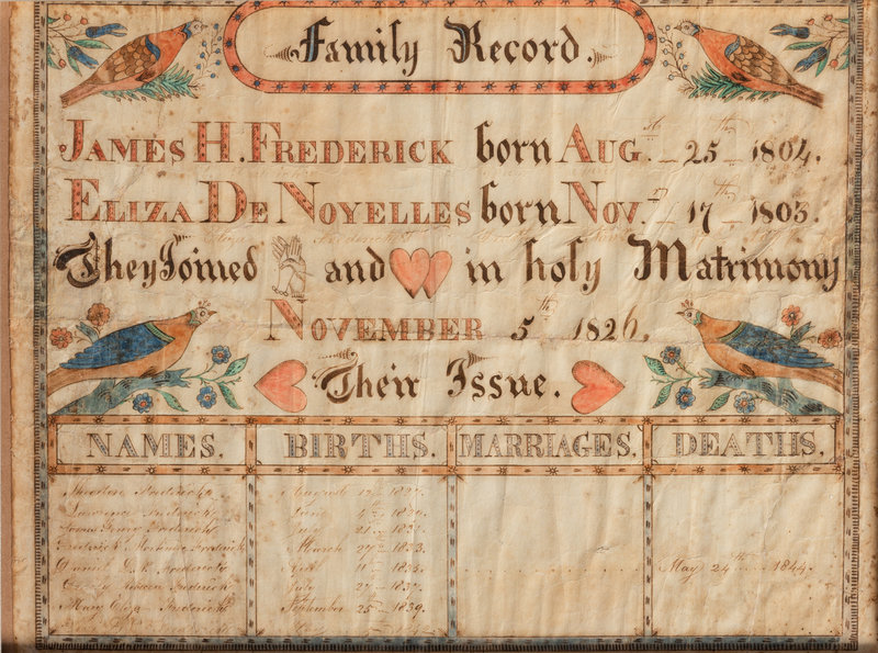 For James H. Frederick (1804-1850) and Eliza De Noyelles (1803-1847) and further listing their children.