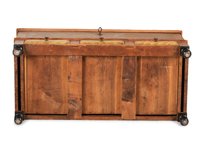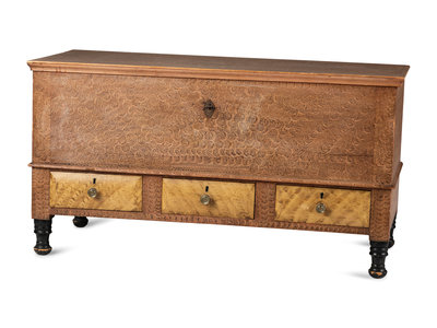 A Grain Paint Decorated and Part Ebonized Three-Drawer Blanket Chest