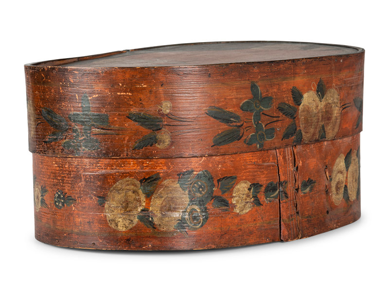 A Pennsylvania Polychrome Painted Bentwood Hat Box