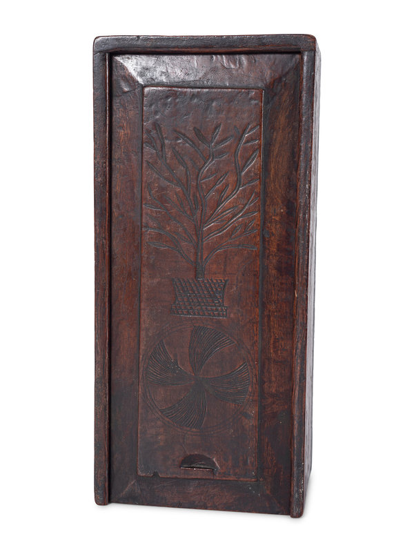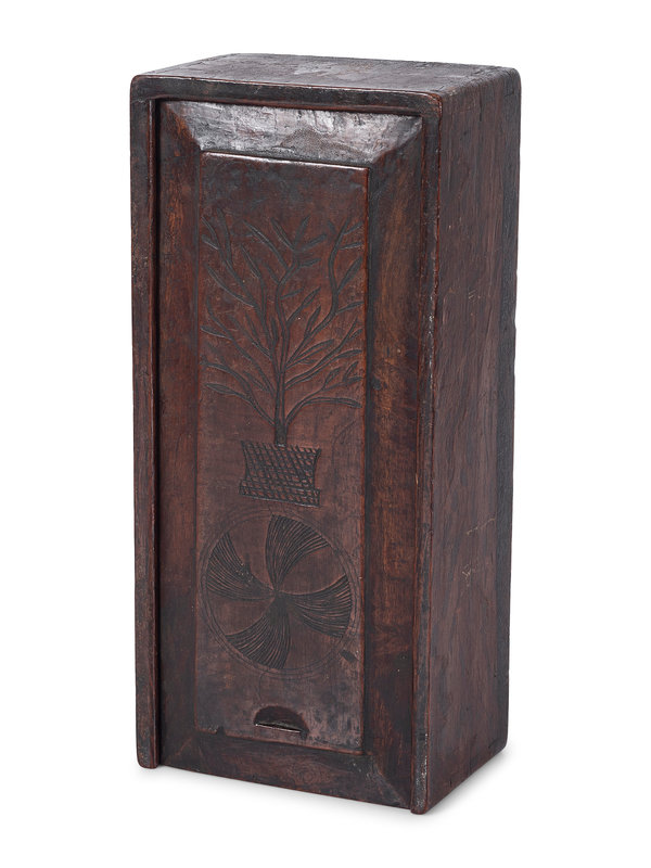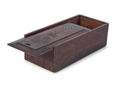 A Thistle Carved Oak Slide-Lid Candle Box