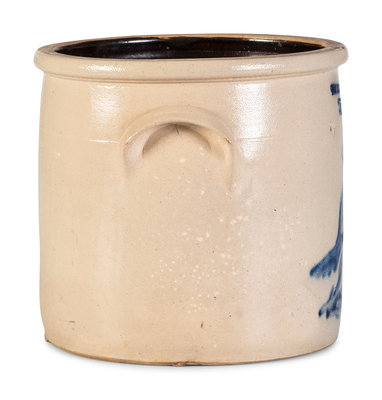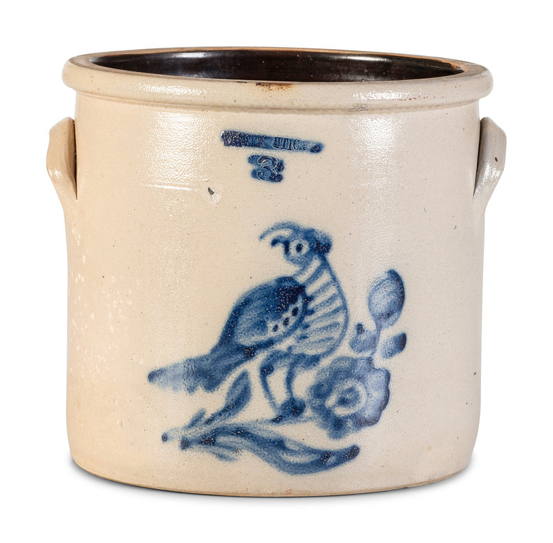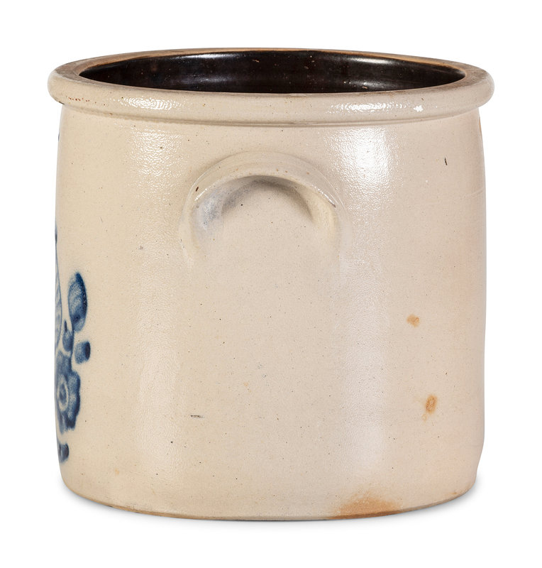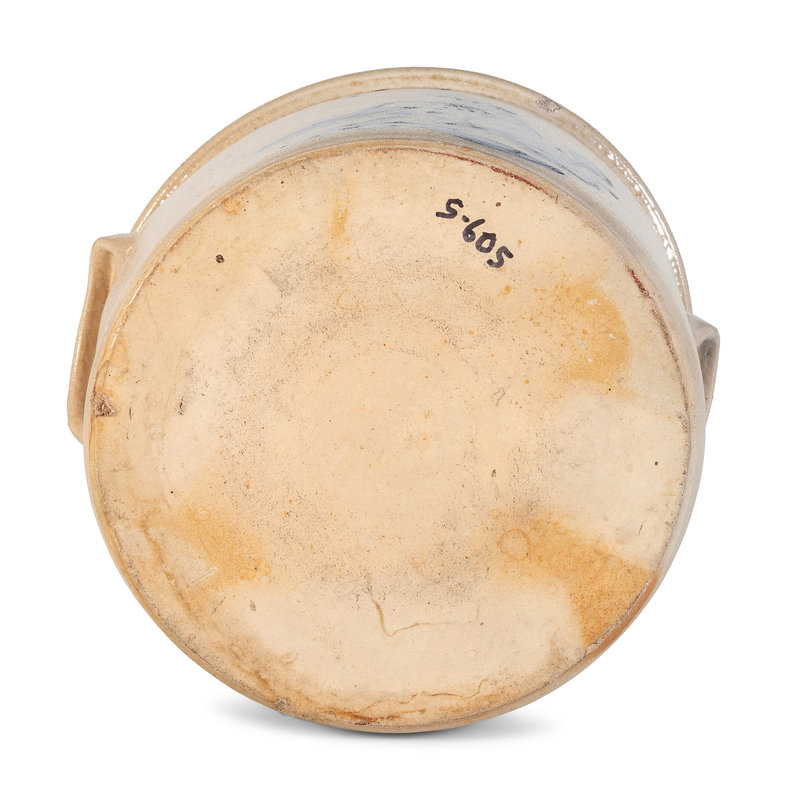 A Cobalt Decorated Stoneware 3-Gallon Quail and Flower Crock