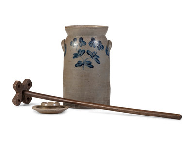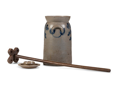 A Cobalt Decorated Stoneware Butter Churn