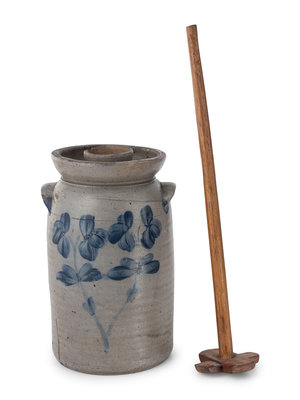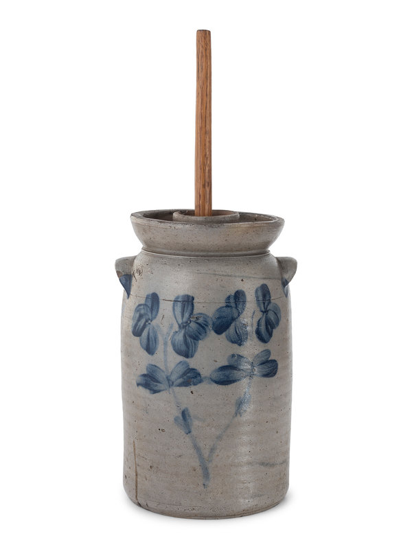 A Cobalt Decorated 1 1/2 Gallon Stoneware Butter Churn