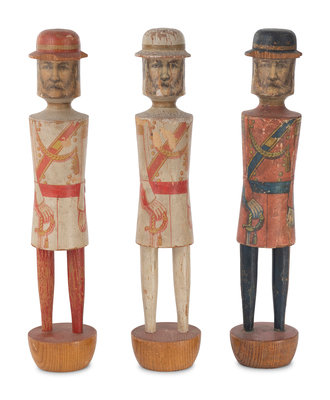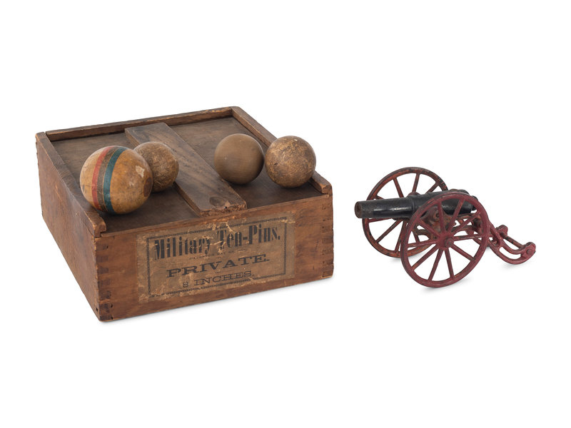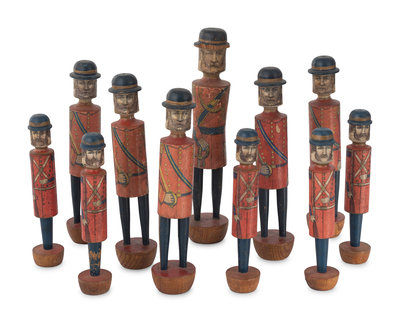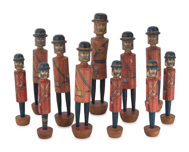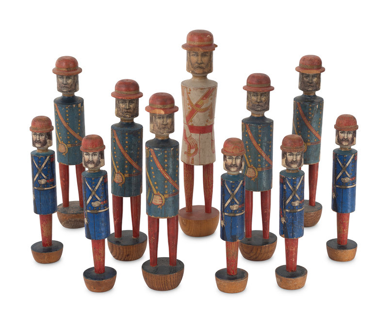 A Set of Painted Wood and Lithographed Military Ten-Pins