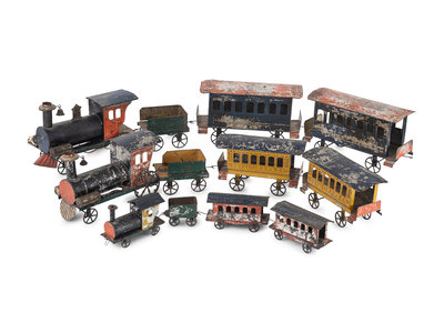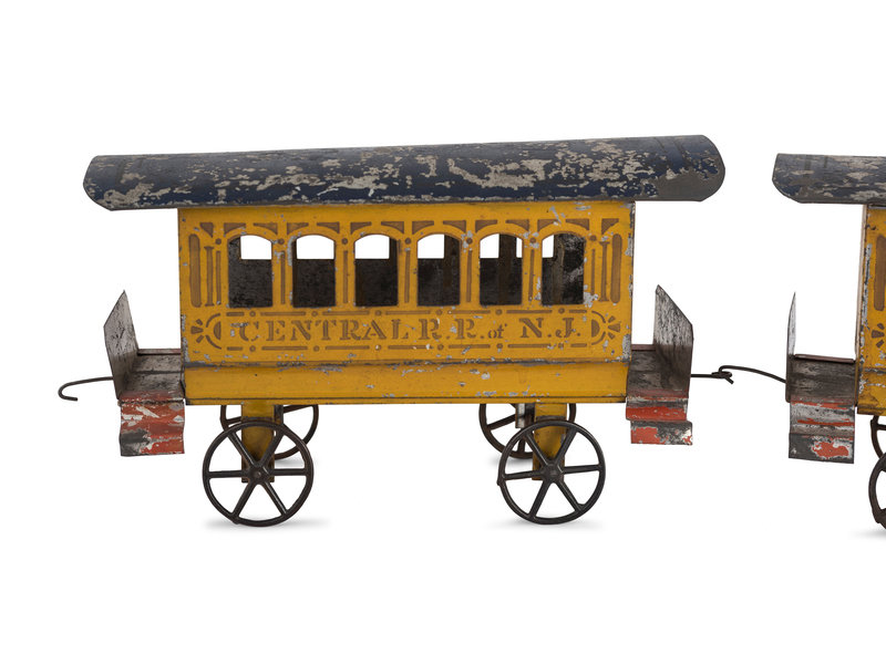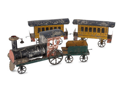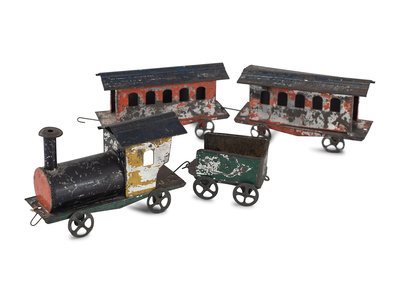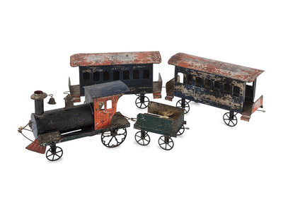 Three Hero Polychrome Decorated Train Cars of Graduating Size