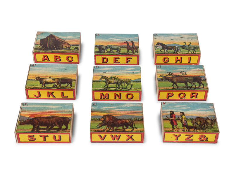 Two Lithograph Paper on Wood Building Block Sets