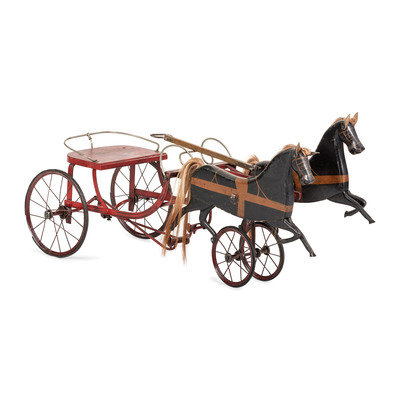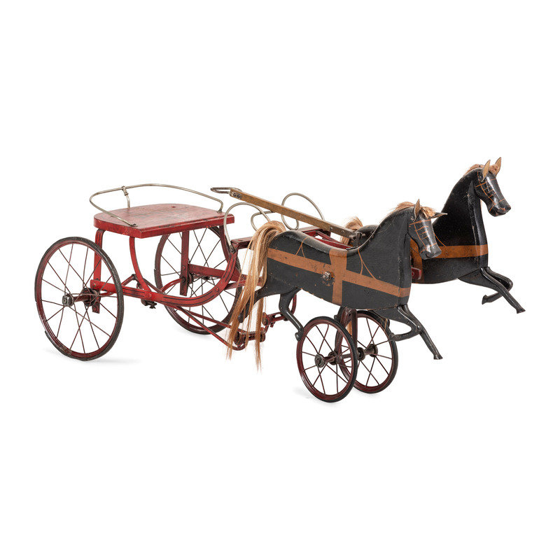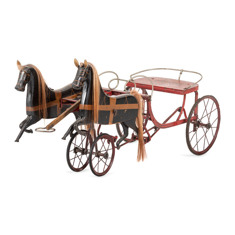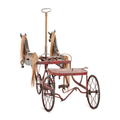 A Painted Wood and Metal Horse Drawn Pedal Cart