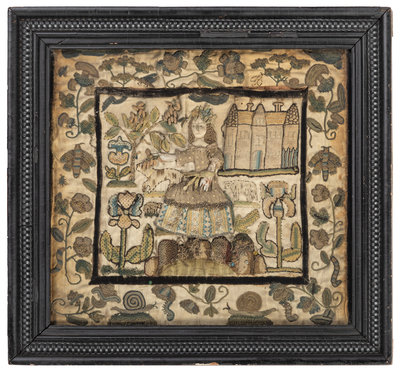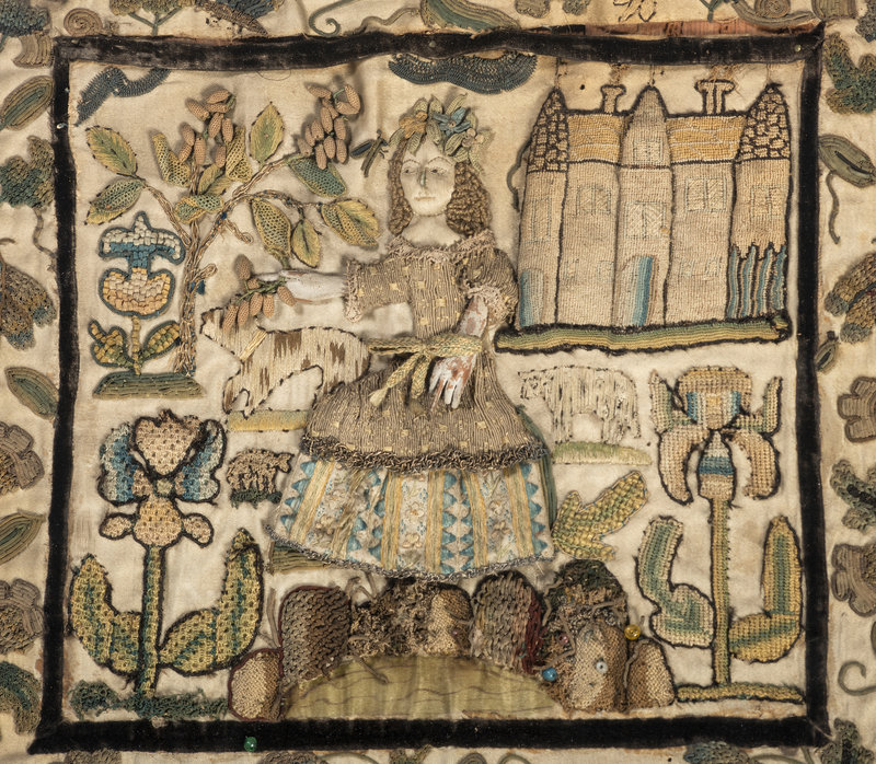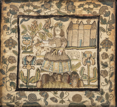 An English Silkwork Embroidered Shepherdess Picture