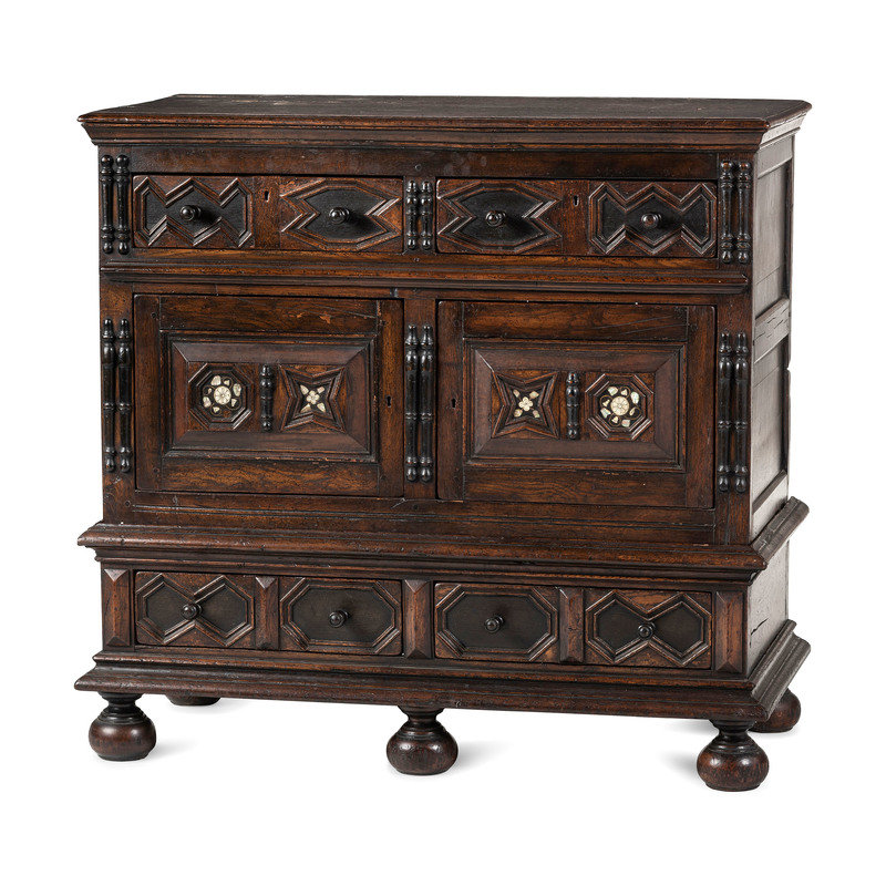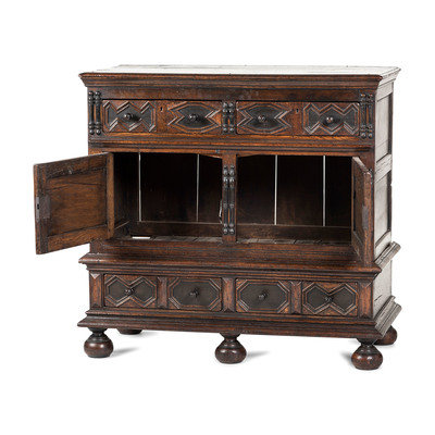 A Flemish Paneled and Molded Oak Chest of Drawers