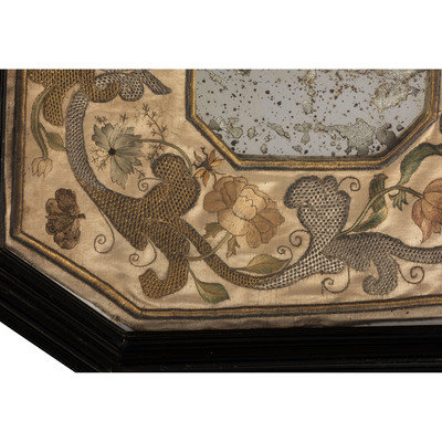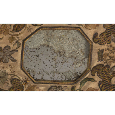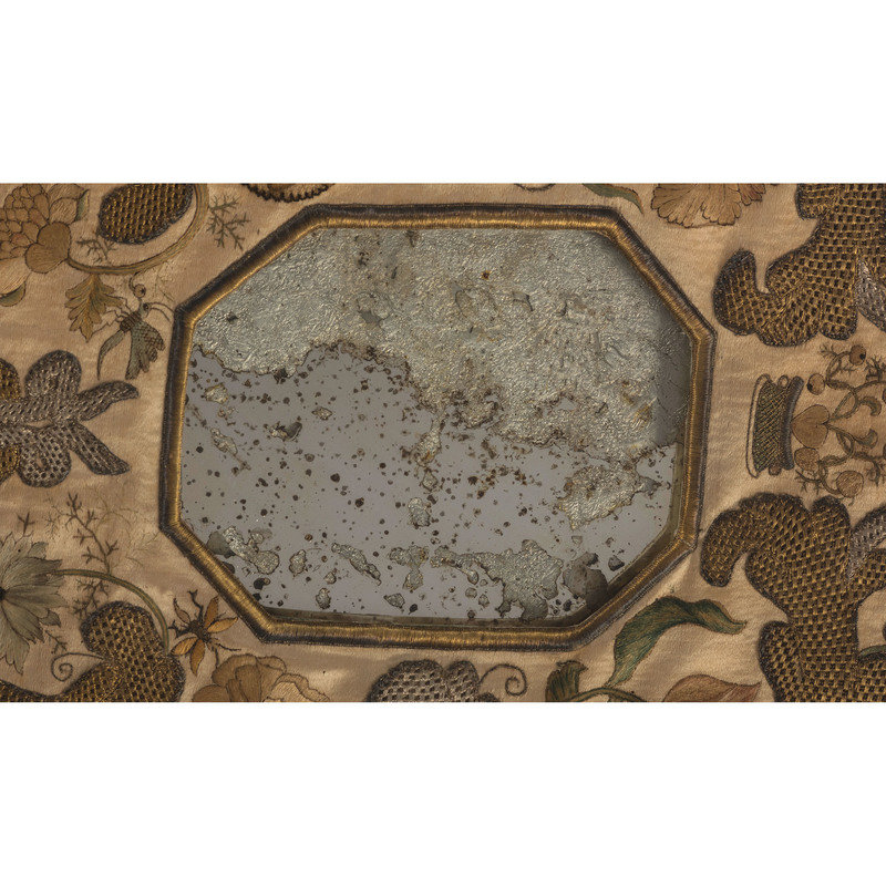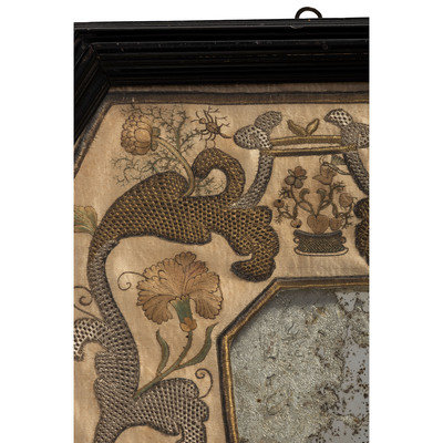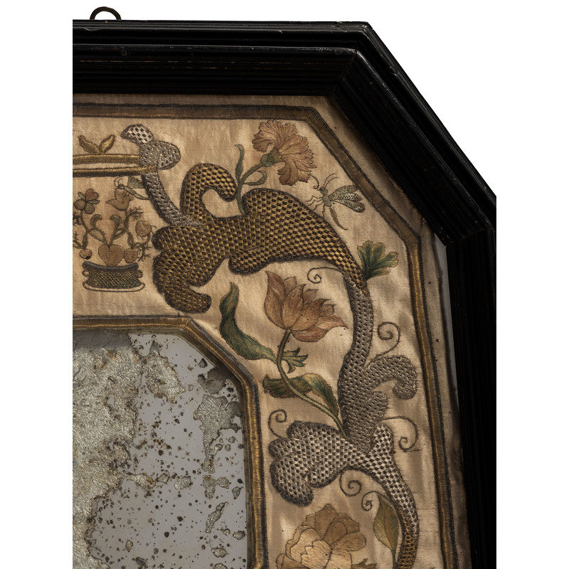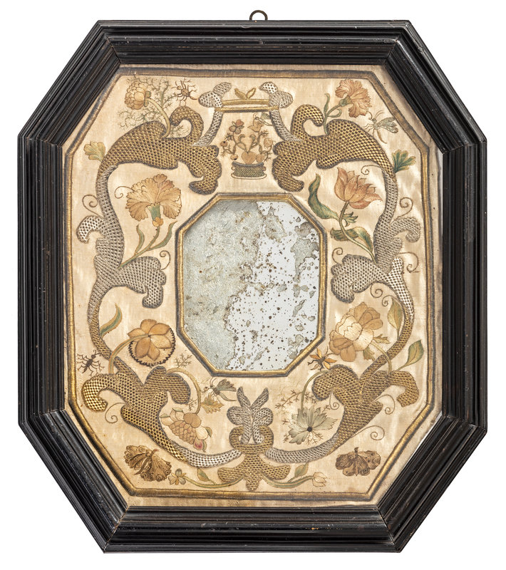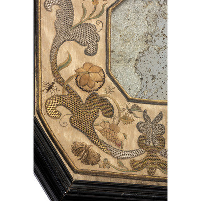 An English Metallic Stumpwork Embroidered Framed Mirror