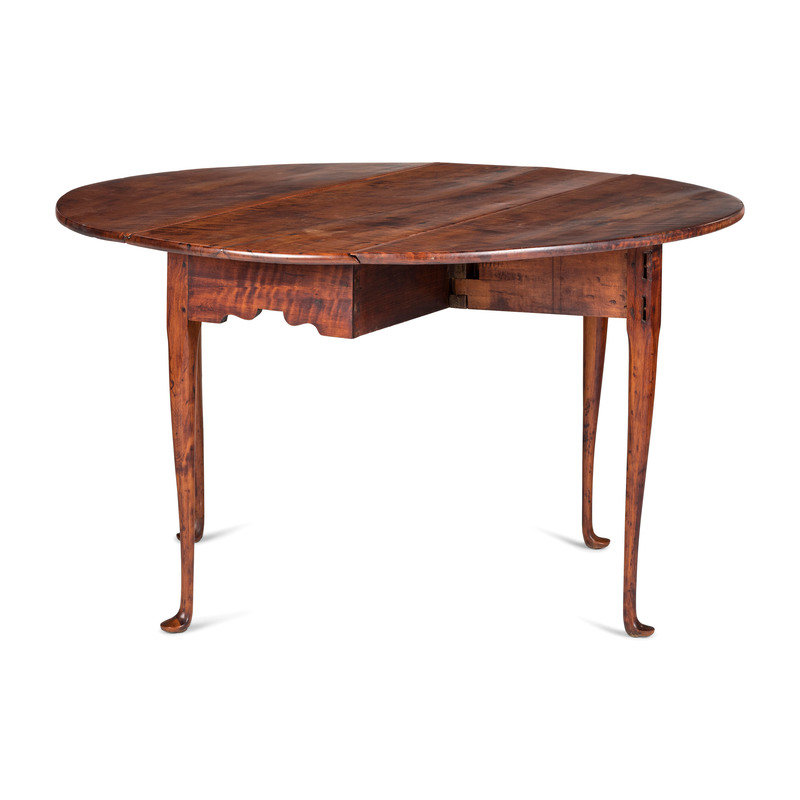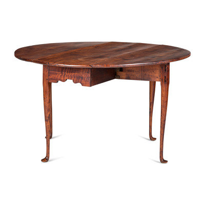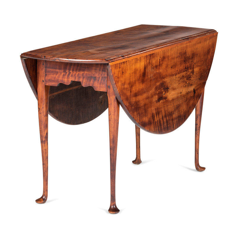 A Queen Anne Tiger Maple Pad-Foot Drop-Leaf Table