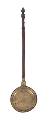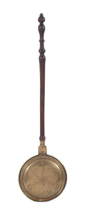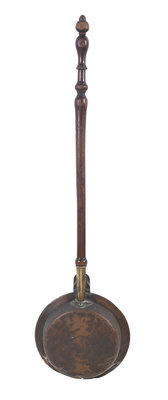 An English Engraved Brass and Turned Walnut Bed Warmer