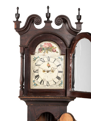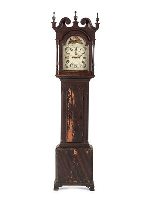 A Chippendale Grain Painted Pine Tall Case Clock