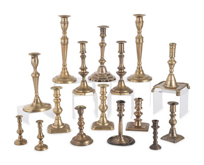 Sixteen English Brass Candlesticks