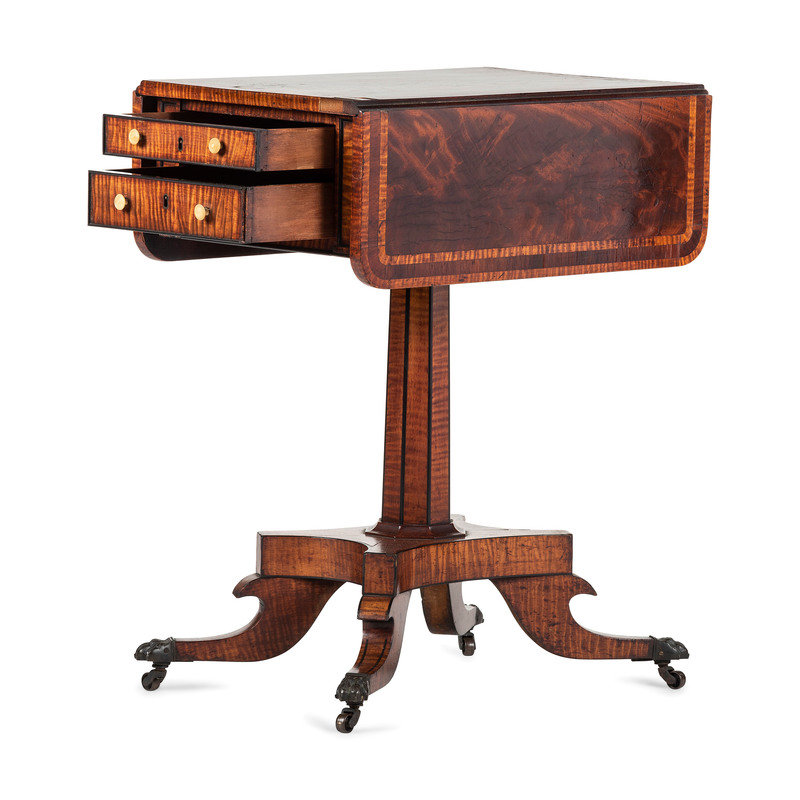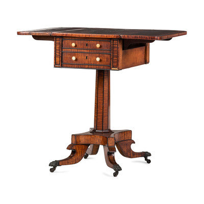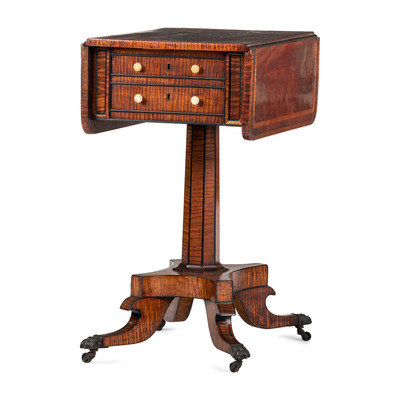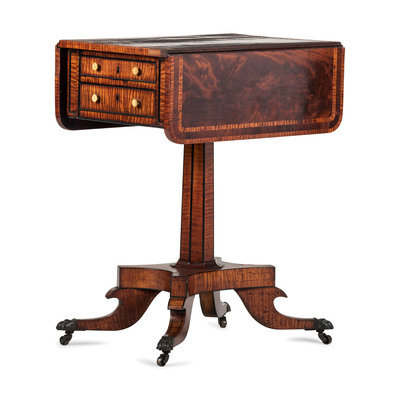 A Regency Inlaid and Figured Maple and Mahogany Work Table