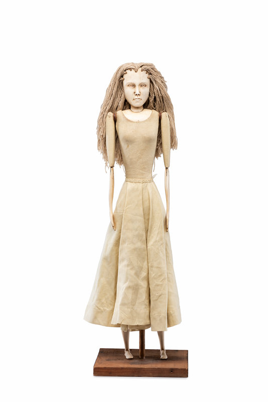 carved bone and fabric