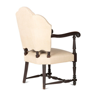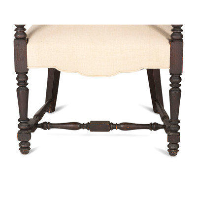 A William IV Carved and Turned Walnut Stretcher Base Library Armchair