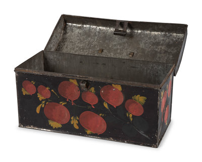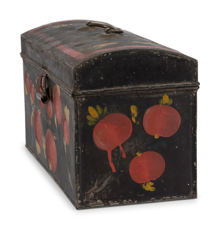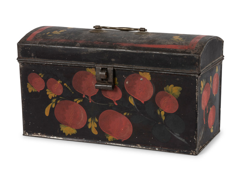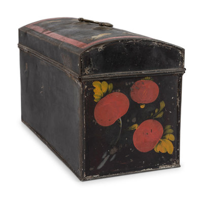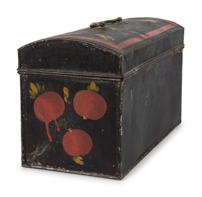 A Toleware Pomegranate or Cherry Paint Decorated Dome-Top Box