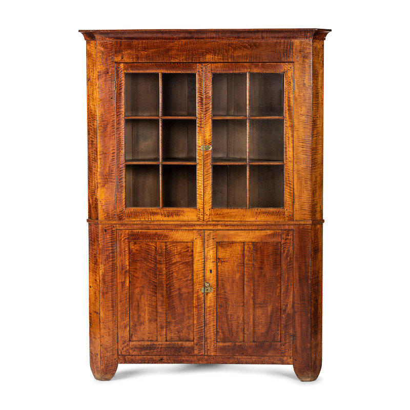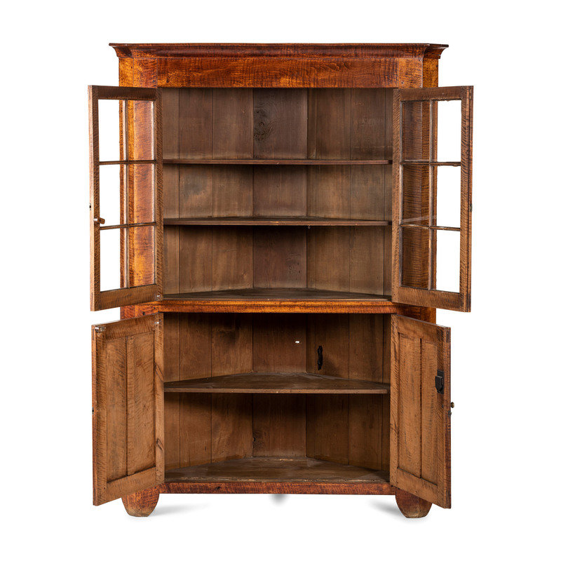 A Chippendale Tiger Maple Corner Cupboard