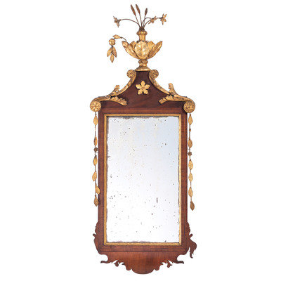 A Federal Parcel-Gilt Mahogany Star and Urn Decorated Looking Glass