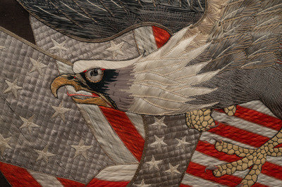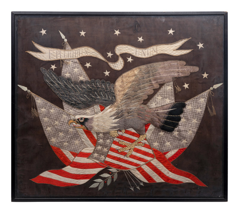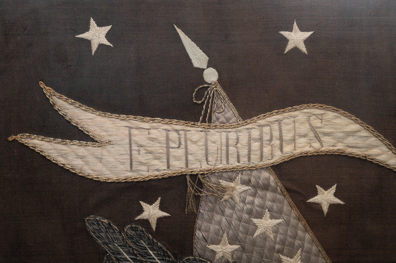 A Japanese Export Silk and Metallic Thread Embroidered Seal of the United States Panel