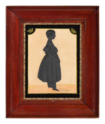 housed in original mahogany frame with gilt liner and eglomise mat.