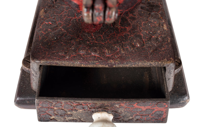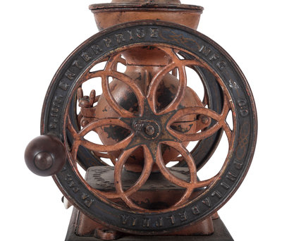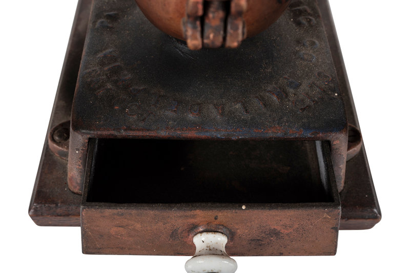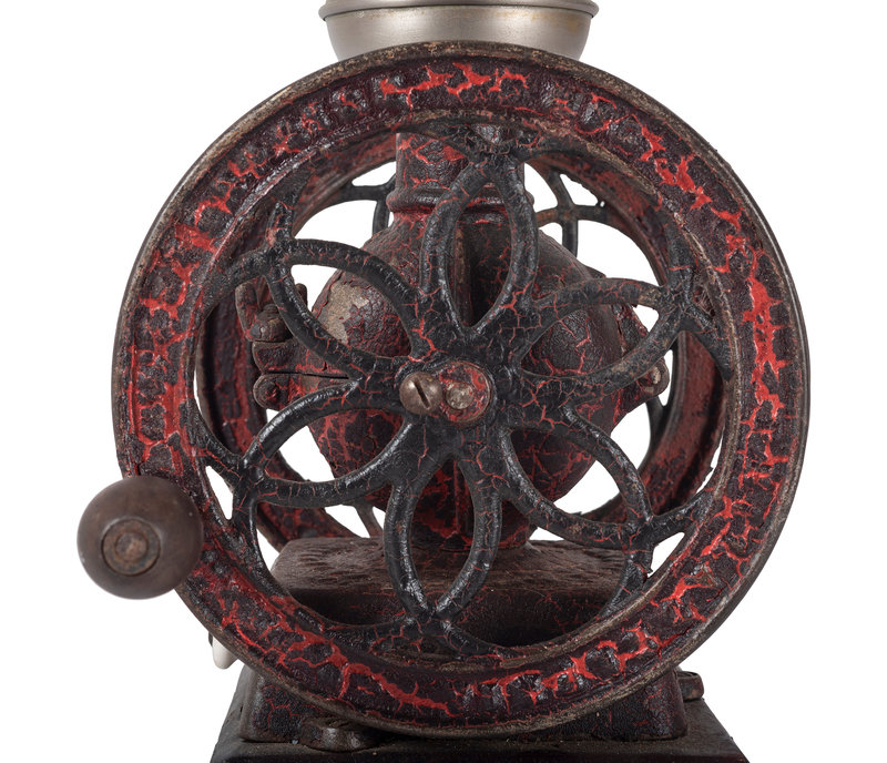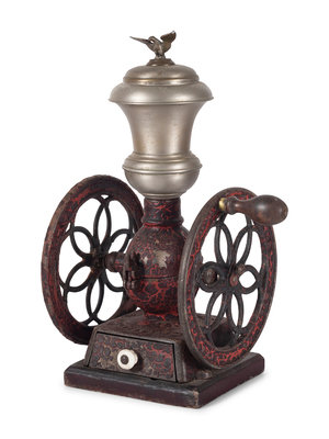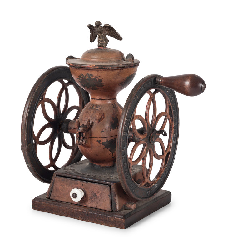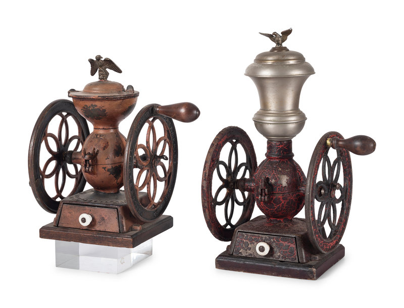 Two Enterprise Painted Cast Iron Coffee Mills with Eagle Finials