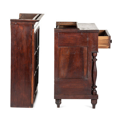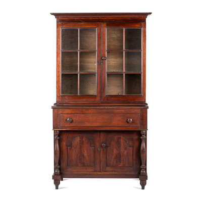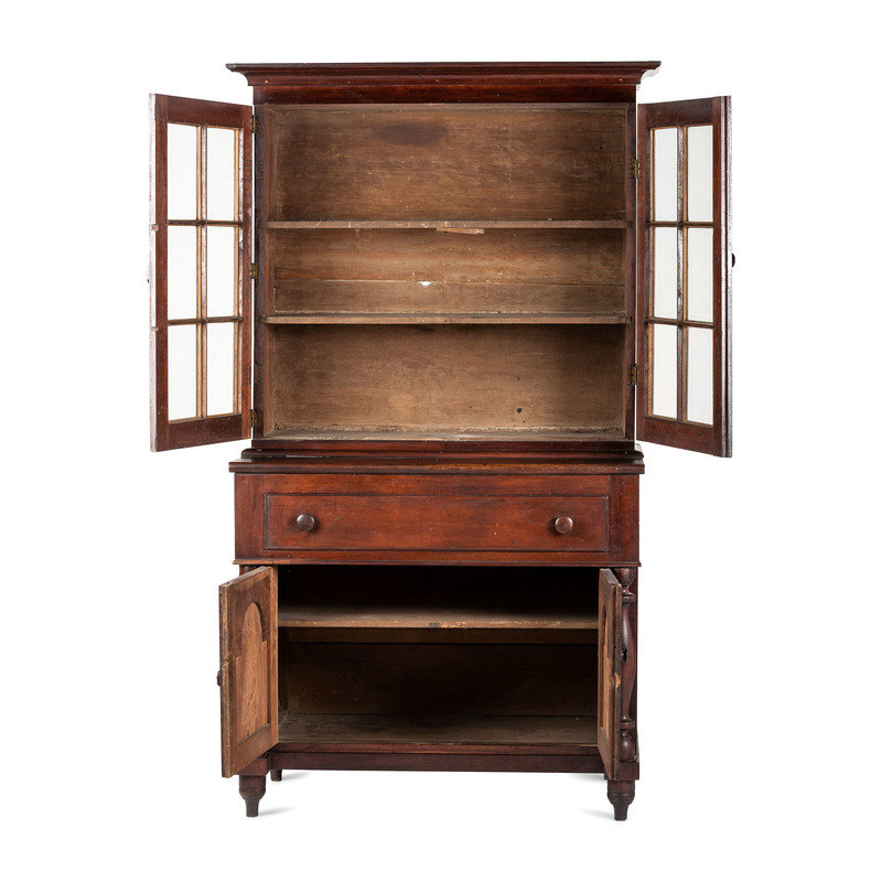 A Federal Turned and Paneled Cherrywood Glazed Stepback Cupboard