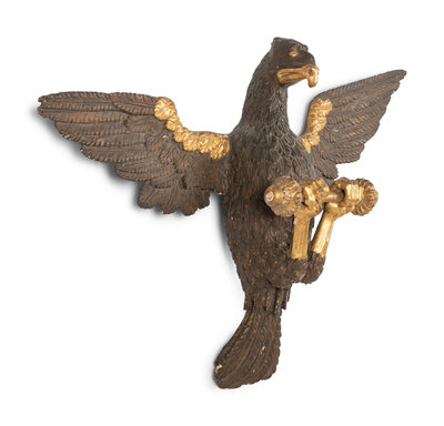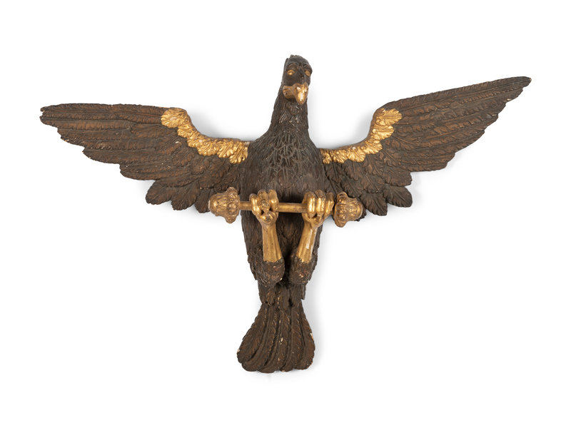 A Carved and Painted Wood Spread Winged Eagle Wall Hanging
