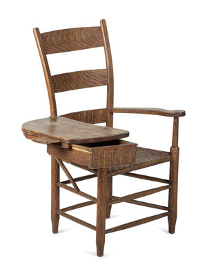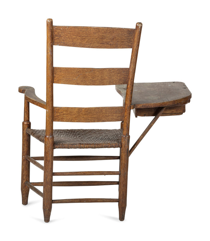 A Grain Paint Decorated Woven Reed-Seat Ladder-Back Writing Armchair