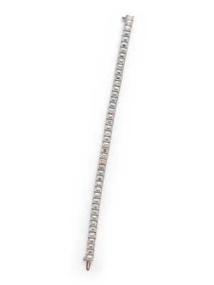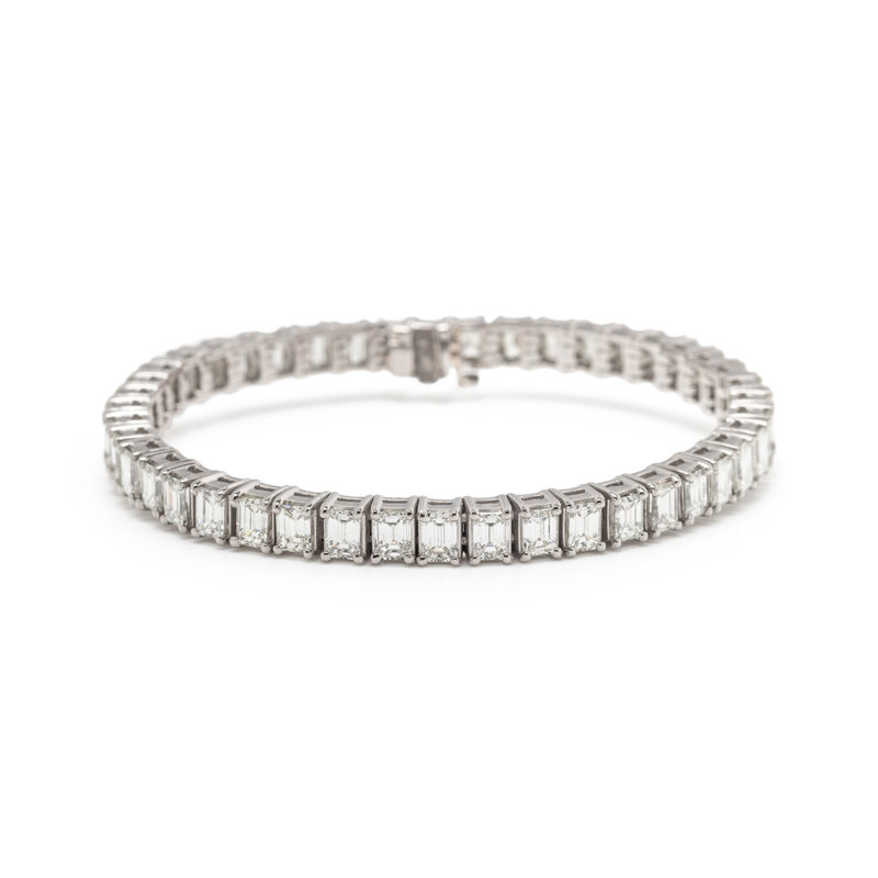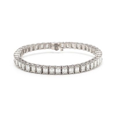 Containing 44 emerald cut diamonds weighing approximately 14.00-15.00 carats total. Mounted in platinum. 7 inches long.