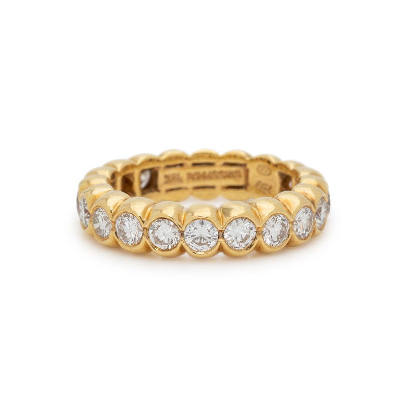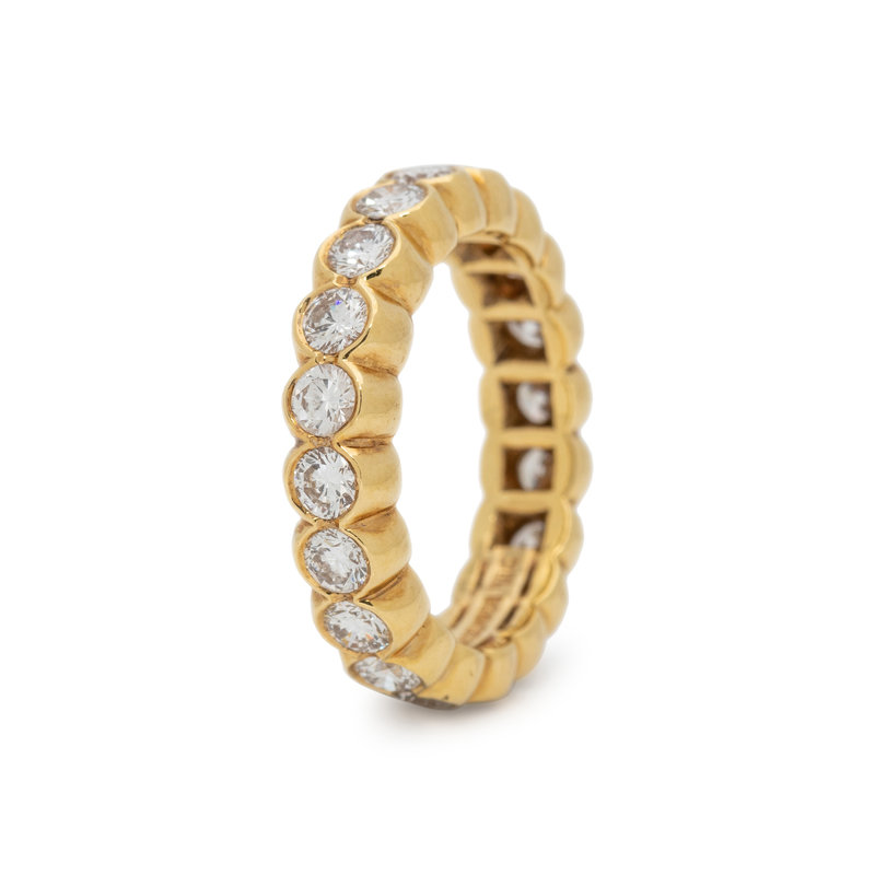 Containing 20 round brilliant cut diamonds weighing approximately 2.00 carats total. Mounted in yellow gold. Ring size 6 1/4.