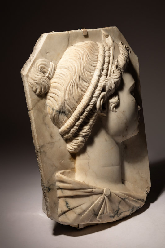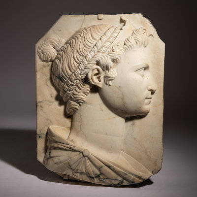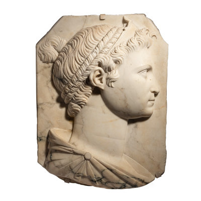 depicting a young Emperor in profile, donning a diadem, the shoulders draped, with canted corners.