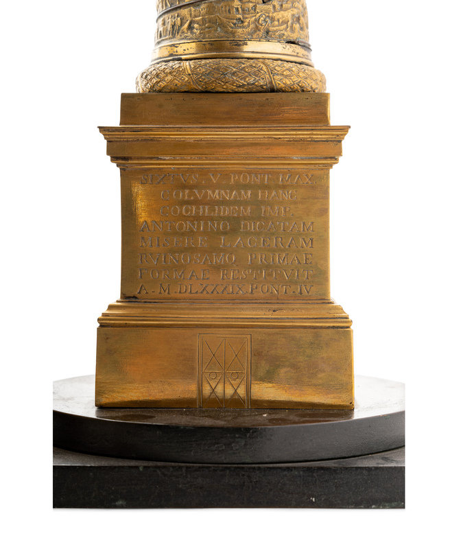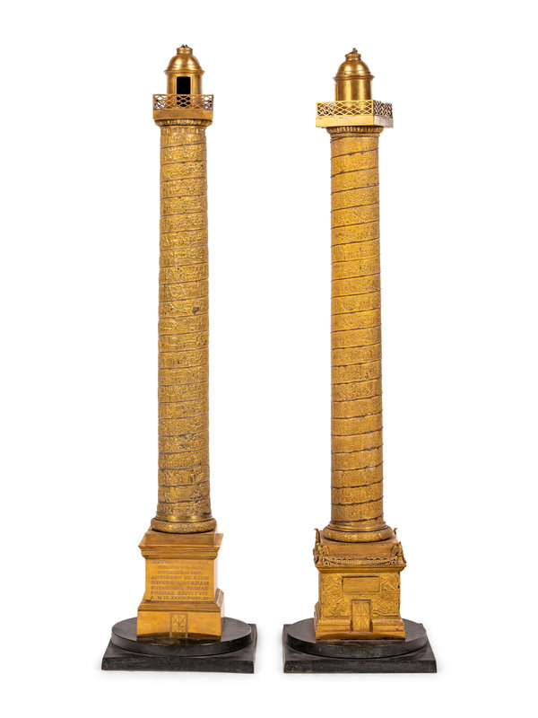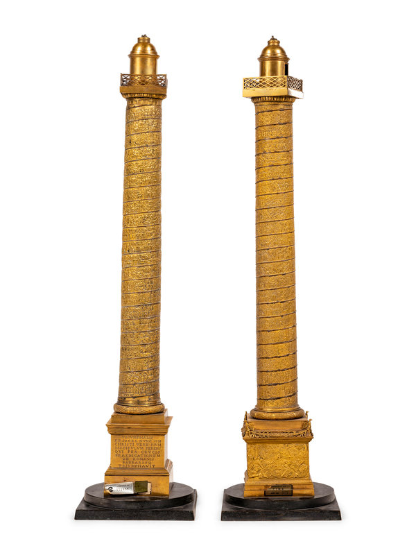 Two Large Grand Tour Gilt Bronze Models of the Column of Marcus Aurelius and Trajan's Column