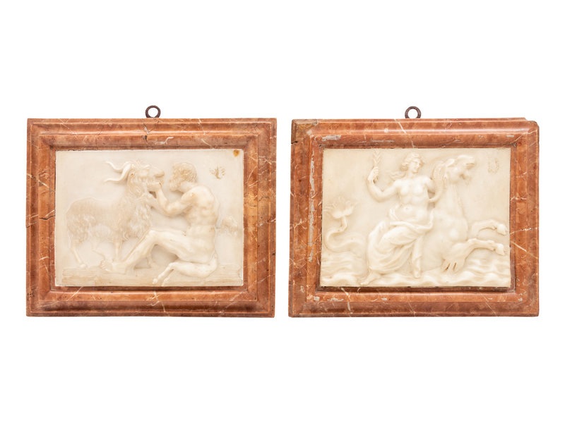 A Pair of Grand Tour Carved Marble and Alabaster Relief Plaques